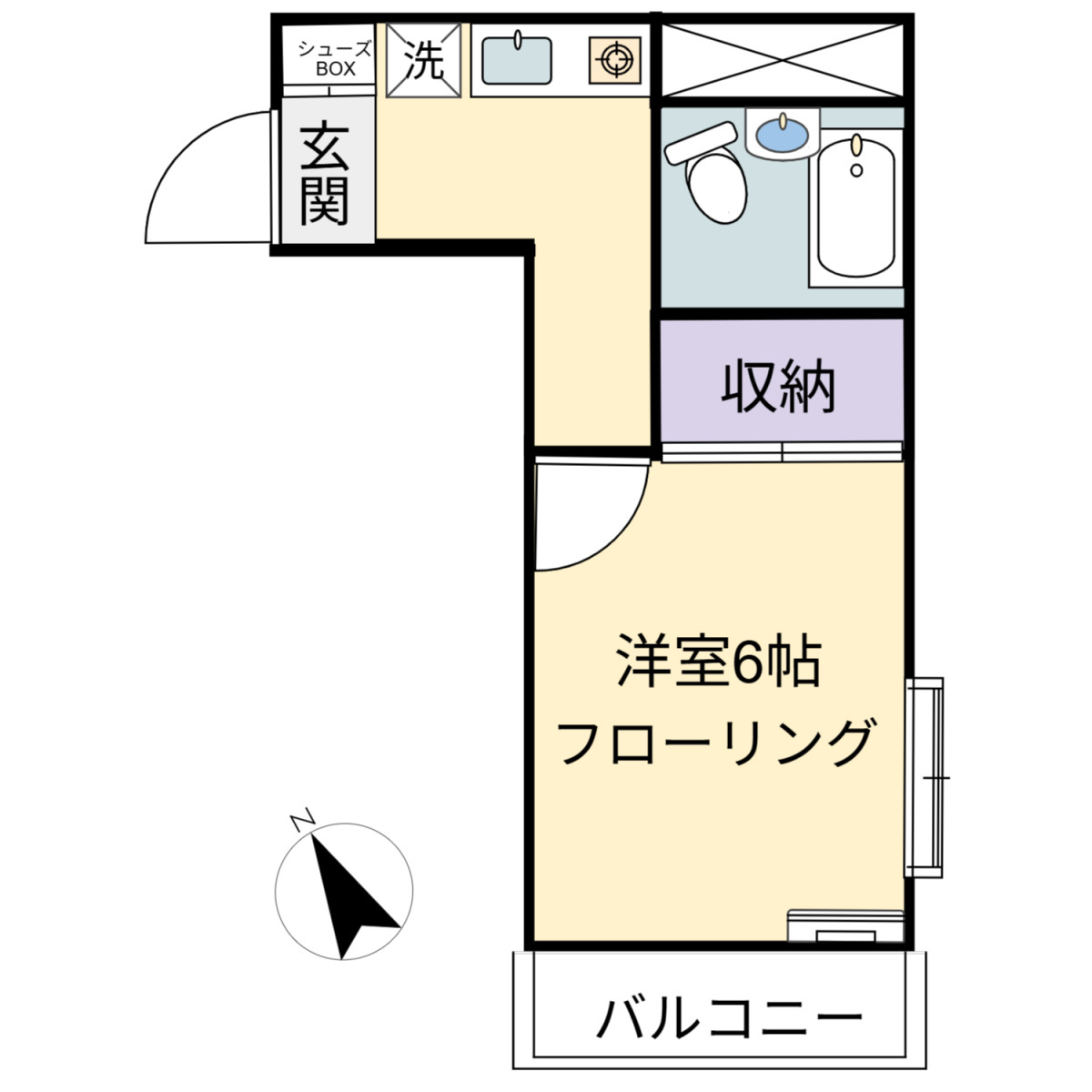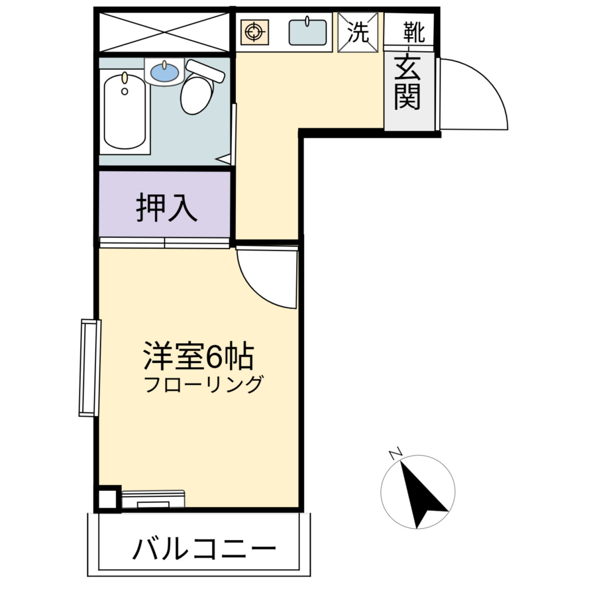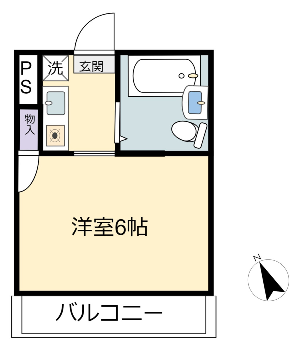 専有面積 19.03㎡ / 1K / 築年月 1991年8月 / 南西向き